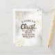 Inspirational quote scripture postcard depicts a simple gold leaf and grey abstract background design. It features Bible Verse 2 Corinthians 5:17, "If anyone is in Christ, the new creation has come: the old has gone, the new is here!"