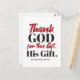 Thank God for this Gift, His Gift. 2 Corinthians 9:15 bible verse. Cute christian gift and Christmas gift.