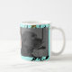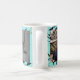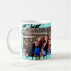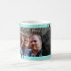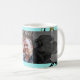 Classy, DIY photo coffee mug with 2 personalised photos of family, friends, pets, or favourite places or events- Makes a great personalised gift on Mother's Day, for new parents, for grandparents, hostess gift for newlyweds, even for pet lovers. Display favourite photos while on your coffee break at work for a chance to brag and show off loved ones or vacation memories. Left side has large rectangular photo template. Right side displays a square, personalised picture. Personals photos of same shapes work best. Framed with Tiffany blue, faux metallic gold, and black marble stone look border for a trendy, modern style. Personalised office gift will become a keepsake for anyone.
