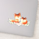Contour sticker with a drawing of 2 red foxes. One standing up the other laying down. Drawn with watercolor.
