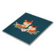 Ceramic tile with a drawing of 2 red foxes. One standing up the other laying down. Drawn with watercolor.