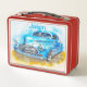 This is a standard metal lunchbox that appears to work just fine. We designed this box ourselves with an uploaded photo and custom text on the front and back. It looks absolutely beautiful except the front of the lunchbox is not centered like it shows in the photo. The print borders don't align with the inset flat part of the box where the preview photo online showed it perfectly centered in there. The back looks nice and centered though.