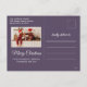Modern holiday greeting postcard featuring one of your favourite Christmas family portraits on the left complemented by a real gold foil frame and wording that reads "Believe in the magic of Christmas" on the right over a modern violet background, customisable with your own greeting message.