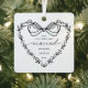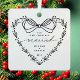 Simply perfect couple First Christmas ornament featuring a hand drawn leaf frame with modern script and and trendy coquette bow.