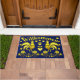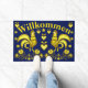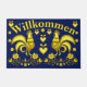 2 Folk Roosters, gold/blue Willkommen, welcome Doormat