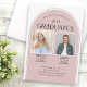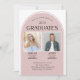 This modern graduation invitation features a design specifically for two graduates. The invite is perfect for brother and sister, twins, or friends. The background features a light dusty rose coloured arched shape.