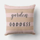 Text says "patio QUEEN" on one side, and "garden GODDESS" on the other. Text can easily be customised in order to create fun and relevant alternatives, maybe even contrasting on each side of the pillow. With several pillows it might even turn into some fun game.