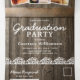 A 2 in 1 rustic country graduation party trifold invitation featuring a rustic wooden barrel background, twinkle string lights, delicate babys breath floral pattern, photos of the graduate, the class year, graduation celebration details, and an rsvp postcard for your guests to cut off and send back.