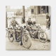 Magnet with image of two men riding motorcycles. This an antique photograph in my collection. It has been repaired for your enjoyment.