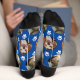 These cute 2 pet photo socks feature photos of your two pets (or two photos of the same pet!) in a row pattern with white paw prints on a blue background, and are the perfect custom socks to feature your dog, cat, or anything with paws! This is a great gift for the pet lover or sock lover and a great Christmas stocking stuffer!
