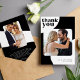 Abstract arch shapes retro unique wedding two custom photos thank you card with your message (pre-printed text template) and bold typography in simple minimalist black and white. +++++++ Suitable for casual stylish contemporary weddings. Digital download available