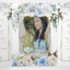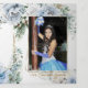 Flores de peonía azul elegante - Mis Quince Años en español y en inglés Invitación de Quinceañera - 2 de tus fotos favoritas. Personaliza con todos los detalles para el servicio de misa y fiesta de 15 años, así como tus damas y chambelanes.
