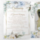 Elegant blue peony flowers - Mis Quince Años in Spanish and in English Quinceanera invitation - 2 of your favourite photos. Personalise with all the details for the mass service and 15th birthday party, as well as your damas and chambelanes.