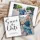 Modern 2 photo wedding Save the Date card with text in a modern brush script font. Let friends and family know your date and where you will be getting married so they can begin making plans.