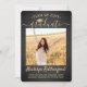 Share the joy of a high school or college graduation with these custom 2 photo black and gold announcements. (IMAGE PLACEMENT TIP: An easy way to centre a picture exactly how you want is to crop it before uploading to the Zazzle website.) This template includes graduate name, class year & school, and is simple to customise with any wording of your choice, such as party invitation details, parents' names, special honours, degree title, favourite inspirational quote, graduate's contact info, future education plans, or new job position. If there's any text not wanted simply delete it. Design features a black brushed background, faux foil mortar board cap, handwritten style script calligraphy, modern minimalist typography, and two photos of your choice, such as senior pictures or images from the commencement ceremony. Please note that gold is printed colour, not metallic foil. These elegant graduation announcement cards are a stylish way to share your special day celebration with family and friends. Congratulations to the graduate!