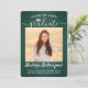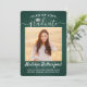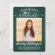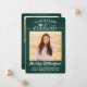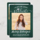 Share the joy of a high school or college graduation with these custom 2 photo green, white and silver announcements. (IMAGE PLACEMENT TIP: An easy way to centre a picture exactly how you want is to crop it before uploading to the Zazzle website.) This template includes graduate name, class year & school, and is simple to customise with any wording of your choice, such as party invitation details, parents' names, special honours, degree title, favourite inspirational quote, graduate's contact info, future education plans, or new job position. If there's any text not wanted simply delete it. Design features a dark green brushed background, faux foil mortar board cap, handwritten style script calligraphy, modern minimalist typography, and two photos of your choice, such as senior pictures or images from the commencement ceremony. Please note that background is printed colour not metallic foil. These elegant graduation announcement cards are a stylish way to share your special day celebration with family and friends. Congratulations to the graduate!