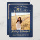 2 Photo Brushed Navy Blue & Gold Script Graduation Announcement