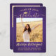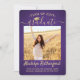 Share the joy of a high school or college graduation with these custom 2 photo purple and gold announcements. (IMAGE PLACEMENT TIP: An easy way to centre a picture exactly how you want is to crop it before uploading to the Zazzle website.) This template includes graduate name, class year & school, and is simple to customise with any wording of your choice, such as party invitation details, parents' names, special honours, degree title, favourite inspirational quote, graduate's contact info, future education plans, or new job position. If there's any text not wanted simply delete it. Design features a purple ombre background, faux foil mortar board cap, handwritten style script calligraphy, modern minimalist typography, and two photos of your choice, such as senior pictures or images from the commencement ceremony. Please note that gold is printed colour, not metallic foil. These elegant graduation announcement cards are a trendy and chic way to share your special day celebration with family and friends. Congratulations to the graduate!