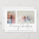 Family 2 Photo Collage Baby Twins First Christmas Card. Simply replace the two sample photos with your own and personalise with your greeting and names at the bottom. Merry Christmas is in a stylish set script.
