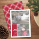 A simple, minimalist Holiday greeting with 2 photos and modern calligraphy. - Red and White Plaid Pattern on the back