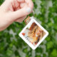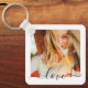 Fully customizable 2 photo template double sided love text metal keychain on white.