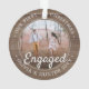 2 Photo First Christmas Engaged Rustic Faux Wood Ornament