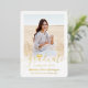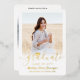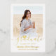 Share the joy of a high school or college graduation and invite family and friends to celebrate with stylish custom 2 photo white and gold foil invitations. All pictures and wording are simple to personalise. (IMAGE PLACEMENT TIP: An easy way to centre a photo exactly how you want is to crop it before uploading to the Zazzle website.) This template is formatted for a graduation party, but can easily be changed to an open house or any type of event. If just an announcement card is preferred, simply change the text to include any details of your choice, such as parents' names, special honours, degree title, graduate's future plans & contact info, or favourite inspirational quote. If there's any text not wanted simply delete it. the white and gold design features real metallic foil, handwritten style script calligraphy, modern minimalist typography, and two photos of your choice, such as senior pictures or images from the commencement ceremony. This elegant graduation invitation card is a trendy and chic way to begin your special day celebration. Example image on back is by Averie Woodard (source: @averieclaire on Unsplash). Congratulations to the graduate!