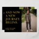 Celebrate the graduate's new journey in live with a special gold foil graduation invitation with the phrase And Now A New Journey Begins. Full photo on front along with name and class of 2022 (editable) The back has a full photo and party invitation details.