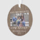 Celebrate the joy of your new place with a custom 2 photo "First Christmas in our New Home" faux wood round acrylic ornament. Text and pictures on this template are simple to personalise. (IMAGE PLACEMENT TIP: An easy way to centre a photo exactly how you want is to crop it before uploading to the Zazzle website.) The modern farmhouse style design features a rustic brown faux wood border, elegant handwritten style script calligraphy, typewriter typography family name and year, and two images of your choice. This unique family keepsake adds a stylish touch to Xmas home decorations or makes a thoughtful housewarming realtor gift idea. There's no place like a new home for the holidays!