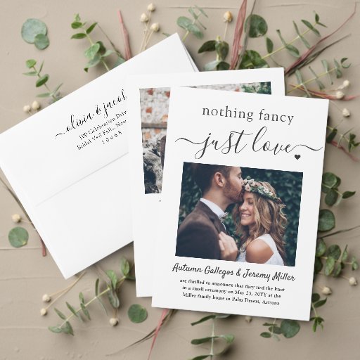 2 Photo Nothing Fancy Just Love Wedding Elopement Invitation