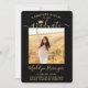 Share the joy of a high school or college graduation with these custom 2 photo black and gold announcements. (IMAGE PLACEMENT TIP: An easy way to centre a picture exactly how you want is to crop it before uploading to the Zazzle website.) This template is simple to customise with any details of your choice, such as party invitation info, parents' names, special honours, degree title, favourite inspirational quote, graduate's contact info, future education plans, or new job position. If there's any text not wanted simply delete it. Design features a black background, faux foil mortar board cap, handwritten style script calligraphy, modern minimalist typography, and two photos of your choice, such as senior pictures or images from the commencement ceremony. Please note that gold is printed colour, not metallic foil. These elegant graduation announcement cards are a trendy and chic way to share your special day celebration with family and friends. Congratulations to the graduate!