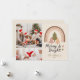 Send warm wishes in cosy retro style with this festive two-photo holiday design. Featuring soft earth tones, a hand-drawn rainbow with Christmas trees, and space for your family name and year, it’s the perfect way to spread some vintage-inspired cheer this season.
