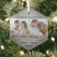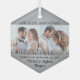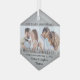Celebrate a joyful silver 25th wedding anniversary with a custom 2 photo "Married 25 Years" hexagon-shaped glass Christmas ornament. The pictures and all wording on this template are simple to personalise. The black and grey design features a faux brushed silver background, stylish vintage art deco style typography, the couple's names & date, and two pictures of your choice. This unique & modern wedding keepsake adds an elegant touch to Xmas home decorations. Please note that silver is printed grey colour, not metallic foil. Congratulations & Happy 25th Anniversary!