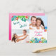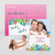 2 Photo Tropical Beach Pink Teal Floral Ombre Announcement Postcard