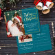 2 photos believe in Christmas magic family blue Foil Holiday Postcard