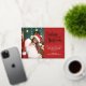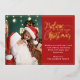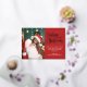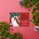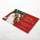 Modern holiday greeting card featuring one of your favourite Christmas family portraits on the left complemented by a real gold foil frame and wording that reads "Believe in the magic of Christmas" on the right over a festive red background, customisable with your own greeting message.