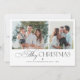 Modern script simple elegant black and white family 2 photos Merry Christmas holiday card with text template on the backside.
