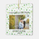 2 Photos Green Polka Dot First Christmas Engaged Ceramic Ornament