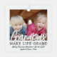 Celebrate the simple joys of the holidays with a custom 2 photo "Grandkids make life grand" black and white square metal ornament. Pictures and all wording on this template are easy to personalize, and can be different or the same on front and back. (IMAGE PLACEMENT TIP: An easy way to center a photo exactly how you want is to crop it before uploading to the Zazzle website.) The modern minimalist black and white design features elegant handwritten style script typography and two pictures of your choice. This unique keepsake adds a stylish touch to the new grandparents' Xmas home decorations. Merry Christmas Grandma and Grandpa!