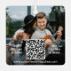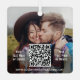 This year celebrate the joyful wonders of modern technology with a fun interactive QR code square metal Christmas ornament. All wording on this template is simple to personalise or delete, and can be different or the same on front and back. (IMAGE PLACEMENT TIP: An easy way to centre a photo exactly how you want is to crop it before uploading to the Zazzle website.) The minimalist black and white design features elegant modern typography and up to two scannable QR codes overlayed with pictures of your choice. By scanning the code with their phone, family and friends are sent directly to an online website where they can view a video message, follow a Santa tracker, or listen to a favourite audio soundtrack / playlist. It could also link to a newlywed couple's wedding song, or a lead to a surprise marriage proposal or promposal. A business could use it to connect clients to the company's internet advertising and social media networking.