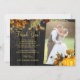 Elegant chic autumn fall wedding stylish thank you card template on dark brown barn wood featuring beautiful burnt orange botanical bouquets with watercolor pumpkin, dried leaves and foliage, strings or twinkle lights, and a chic faux gold calligraphy script. ++++++++++++++ Easy to personalise with your details and two photos on front and back! +++++++++++ Suitable for elegant summer or autumn fall rustic country outdoor backyard or barn weddings.