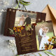 Elegant chic autumn fall wedding stylish thank you card template on brown barn wood featuring beautiful burnt orange botanical bouquets with dried leaves and foliage, strings or twinkle lights, and a chic faux gold calligraphy script. ++++++++++++++ Easy to personalise with your details and two photos on front and back! +++++++++++ Suitable for elegant summer or autumn fall rustic country outdoor backyard or barn weddings.