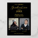 Double Graduation Real Golden Black Whimsical Modern Calligraphy 2 Photos Siblings Metallic Foil Invitation Card with Envelope.
