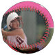 2 Photos Softball with Player Name, Number, Team name in Dark Pink and White. You can make your own unique personalized softball with your name, player number, team name and 2 photos. Great keepsake gift idea or a keepsake for softball players.