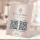 Make it easy for your customers to use contactless pay for your baked goods with this elegant, sophisticated, simple, and modern 2 custom QR codes pedestal sign. A sparkly, rose gold ombre cupcake, script handwritten typography and glitter drips overlay a faux metallic rose gold ombre background. Personalise with your business name, personal QR codes, and contact info with the customisable templates. Available in 4 sizes: 4”x6”, 6”x8”, 8”x10”, and 10”x12”. Makes a chic, professional, and stylish statement that will help your customers pay safely. Coordinating business cards are also available: