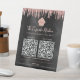 Make it easy for your customers to use contactless pay for your baked goods with this elegant, sophisticated, simple, and modern custom 2 QR code pedestal sign. A sparkly, dark rose gold cupcake, glitter drips, and light pink handwritten script typography overlay a black damask pattern ombre background. Personalise with your business name, 2 personal QR codes, and contact info with the customisable templates. Available in 4 sizes: 4”x6”, 6”x8”, 8”x10”, and 10”x12”. Makes a chic, professional, and stylish statement that will help your customers pay safely. Coordinating business cards are also available: