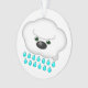 Two cartoony dog clouds (an English Sheep Dog and a brown dog) causing it to rain. Ornament is reversible (one dog on each side)!