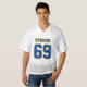 Front Back BLUE OLD GOLD WHITE Mens Vneck Football Jersey DIY Design. 🏈 Be sure to click the “Personalise this template” details button which will open a text template that allows very easy name and number personalisation for each jersey!