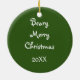 Berry Merry Christmas Teddybears. Customise text area on front and back. Boy and girl bears dressed in their festive holiday clothes. Boy bear is wearing a Santa hat. Girl teddy has a gingerbread cookie.. Back of this Christmas Ornament say Beary Merry Christmas 20XX. Fun holiday gift or keepsake.