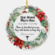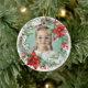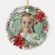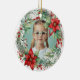 This elegant double-sided Christmas memorial ornament is a heartfelt way to remember a loved one. The front showcases a custom photo, encircled by a festive wreath of pine branches, red berries, and red poinsettias. The rich greenery and warm colours create a cosy holiday feel, making it a cherished keepsake. The back can be personalised with their name, dates, or a special message, offering a loving remembrance that will be treasured for years. Perfect for honouring their memory, this ornament combines warmth and sophistication, celebrating their presence during the holiday season.